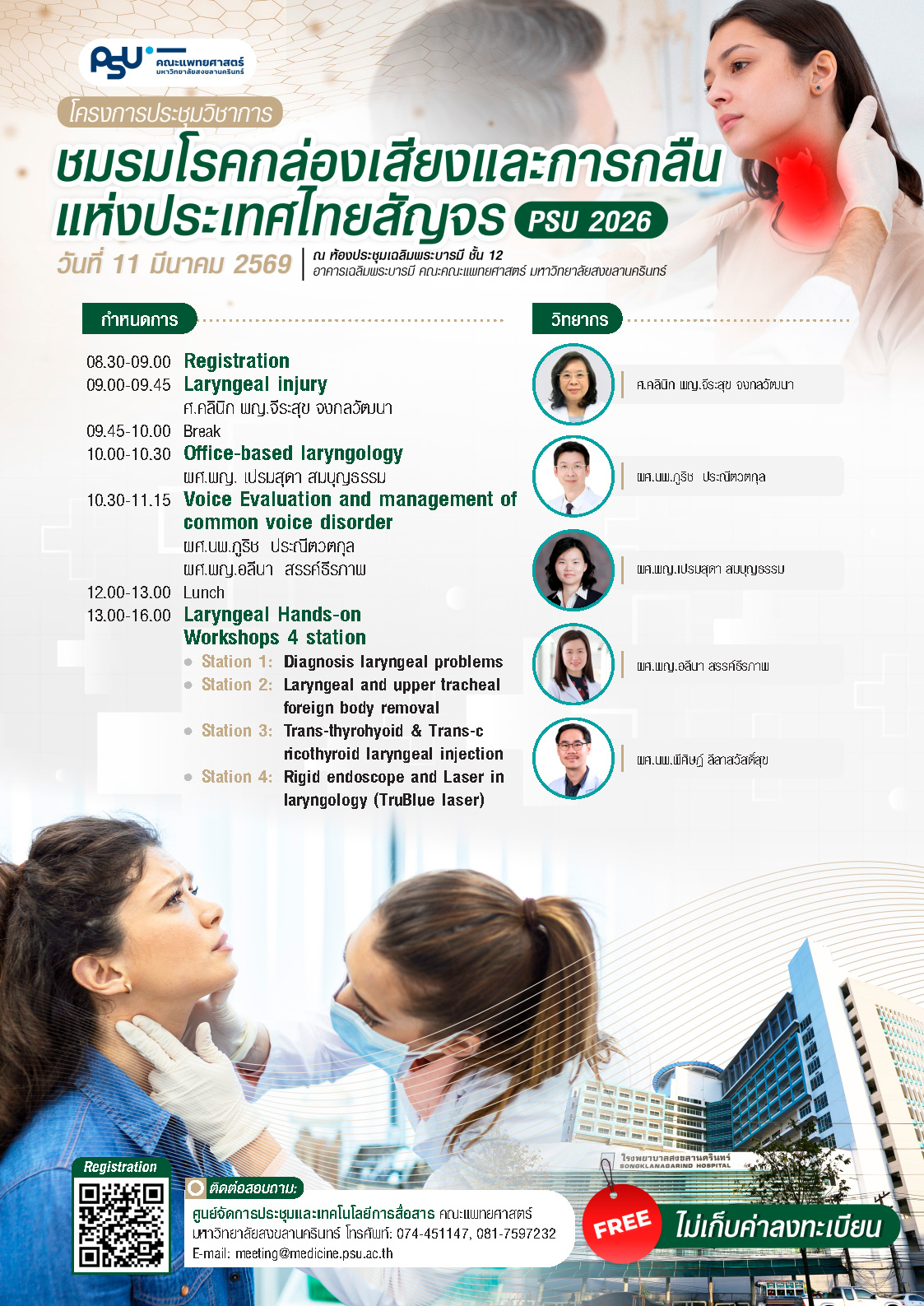 โครงการประชุมวิชาการชมรมโรคกล่องเสียงและการกลืนแห่งประเทศไทยสัญจร, PSU 2025 ฟรี..ไม่เก็บค่าลงทะเบียน